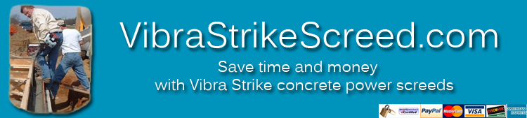 Your site for affordable and durable vibrating concrete power screeds. Lindley Incorporated's Vibra Strike concrete power screeds were the first revolutionary screeds to make concrete screeding easy. Vibra Strike power screeds allow you to screed concrete from form to form or wet screed. Vibrating Concrete Power Screed